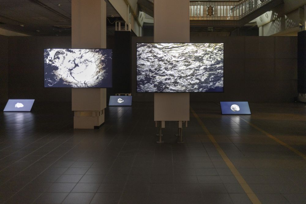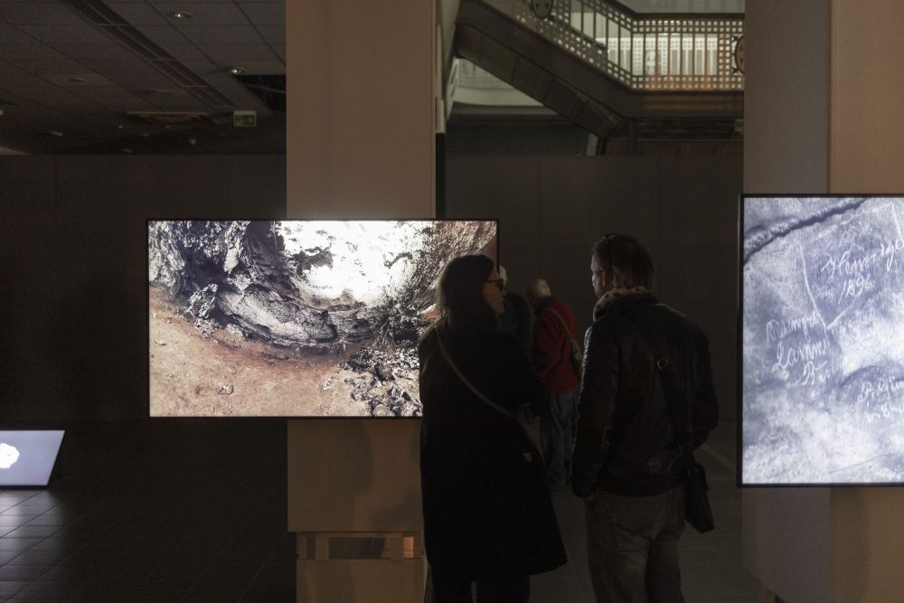 Die Videoinstallation verknüpft drei geologische und kulturelle Formationen zu einer Erzählung über Stoffkreisläufe und Zeit: den Störmthaler See, die Wimmelburger Schlotten und Fossilien aus Muschelkalk. Im Störmthaler See, einem gefluteten Tagebaurestloch, entstehen weiße Trübungen durch eine gesteuerte Kalkung: Kalziumkarbonat wird eingebracht, um Wasserqualität und pH-Wert zu stabilisieren. Von oben betrachtet erscheinen die künstlichen Kalkwolken wie ein Echo uralter Gesteinsbildung. Unter Tage zeigen die Wimmelburger Schlotten, wie Wasser Landschaft formt. Über Jahrtausende durchspülte es die Ablagerungen des Zechsteins, bis oberirdisch Täler und unterirdisch weitläufige Hohlräume entstanden. Der Tanzsaal, eine monumentale Kammer, verbindet geologischen Prozess und menschliche Nutzung. Aufnahmen von Muschelkalkfossilien verweisen auf ein Flachmeer vor 240 Millionen Jahren. Ihre Abbildungen verwandeln versteinertes Leben in Topografien und Reliefs, Karten einer geologischen Erinnerung. So treten drei Formen von Kalk in Beziehung: das künstlich eingebrachte Kalziumkarbonat im See, die vom Wasser ausgehöhlten Schlotten und die Fossilien als Zeugen einer vergangenen Zeit. Kalk erscheint nicht nur als Material, sondern als Medium: er trägt Erinnerung, markiert Brüche und legt Spuren frei, die sich in unsere Gegenwart einschreiben.