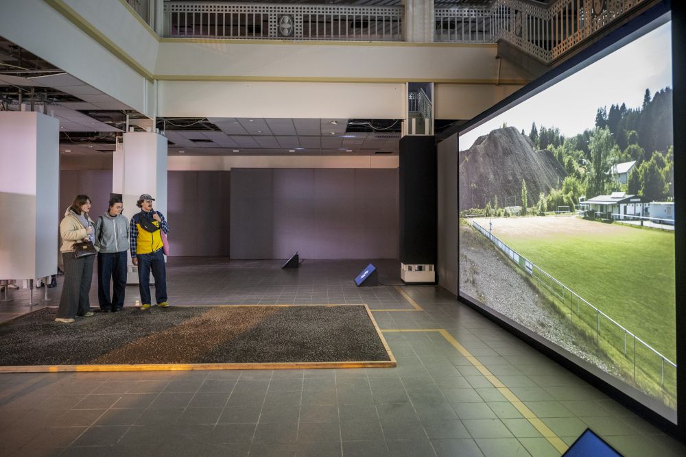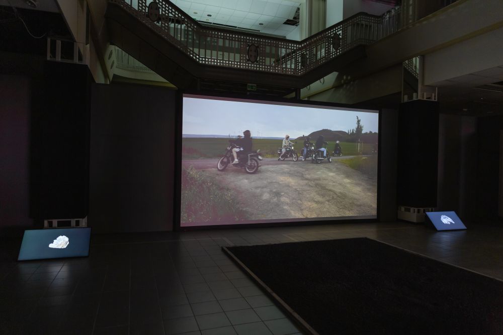 Zusätzlich ist die Videoinstallation der vorangegangenen Ausstellung Solid Waves von Florian Fischer und Johannes Krell (ohne Ton) zu sehen.