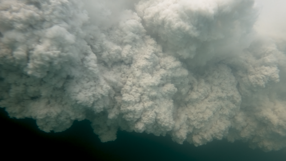 Die Videoinstallation Solid Waves von Johannes Krell & Forian Fischer verknüpft drei geologische und kulturelle Formationen zu einer Erzählung über Stoffkreisläufe und Zeit: den Störmthaler See, die Wimmelburger Schlotten und Fossilien aus Muschelkalk. Im Störmthaler See, einem gefluteten Tagebaurestloch, entstehen weiße Trübungen durch eine gesteuerte Kalkung: Kalziumkarbonat wird eingebracht, um Wasserqualität und pH-Wert zu stabilisieren. Von oben betrachtet erscheinen die künstlichen Kalkwolken wie ein Echo uralter Gesteinsbildung. Unter Tage zeigen die Wimmelburger Schlotten, wie Wasser Landschaft formt. Über Jahrtausende durchspülte es die Ablagerungen des Zechsteins, bis oberirdisch Täler und unterirdisch weitläufige Hohlräume entstanden. Der Tanzsaal, eine monumentale Kammer, verbindet geologischen Prozess und menschliche Nutzung. Aufnahmen von Muschelkalkfossilien verweisen auf ein Flachmeer vor 240 Millionen Jahren. Ihre Abbildungen verwandeln versteinertes Leben in Topografien und Reliefs, Karten einer geologischen Erinnerung. So treten drei Formen von Kalk in Beziehung: das künstlich eingebrachte Kalziumkarbonat im See, die vom Wasser ausgehöhlten Schlotten und die Fossilien als Zeugen einer vergangenen Zeit. Kalk erscheint nicht nur als Material, sondern als Medium: er trägt Erinnerung, markiert Brüche und legt Spuren frei, die sich in unsere Gegenwart einschreiben.