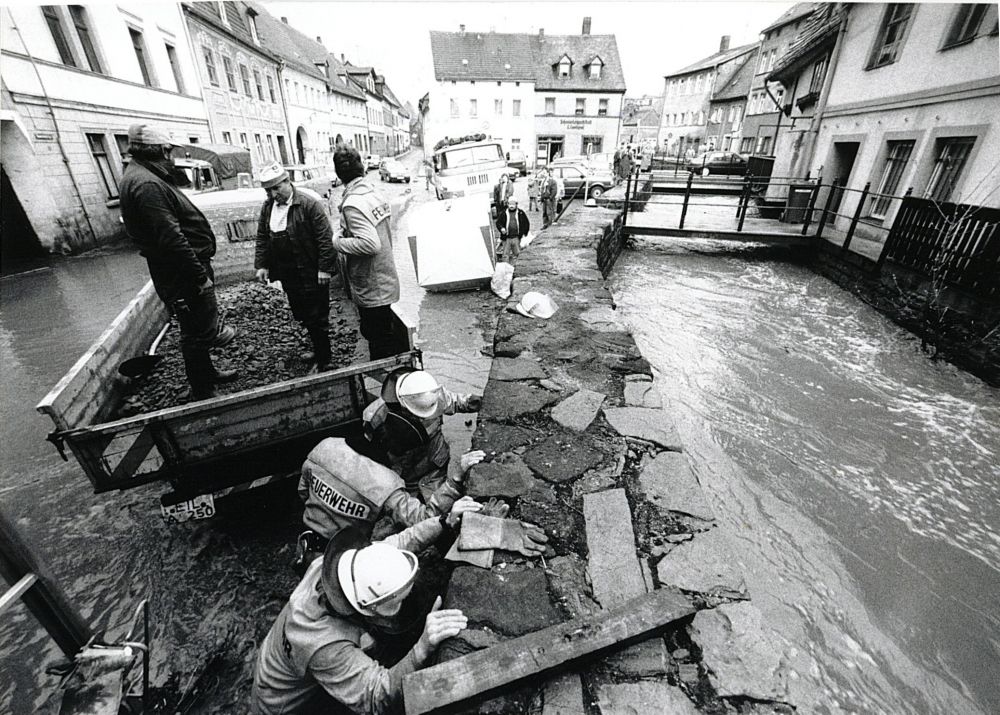 Überflutete Böse Sieben in Eisleben 1994, © Jürgen Lukaschek, Archiv MZ