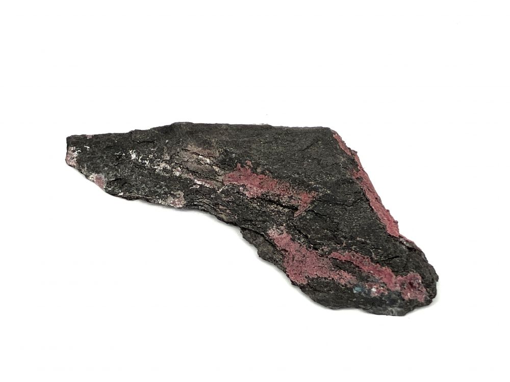 Das Gesteinsstück wurde am Freieslebenschacht Großörner von Hans-Joachim Himmel gefunden. Kobaltblüte (Erythrin) ist ein seltenes, wasserhaltiges Kobaltarsenat. Ausgehend von der Gesamtanalyse des Fundstückes sind im Belag die Minerale Annabergit, Hörnesit und Vivianit anzunehmen. Kobaltblüte wurde Mitte bis Ende des 18. Jahrhunderts in den Revieren Rote Welle-, Todthügel- und Jägerberg in Wiederstedt zielgerichtet abgebaut. © Werkleitz