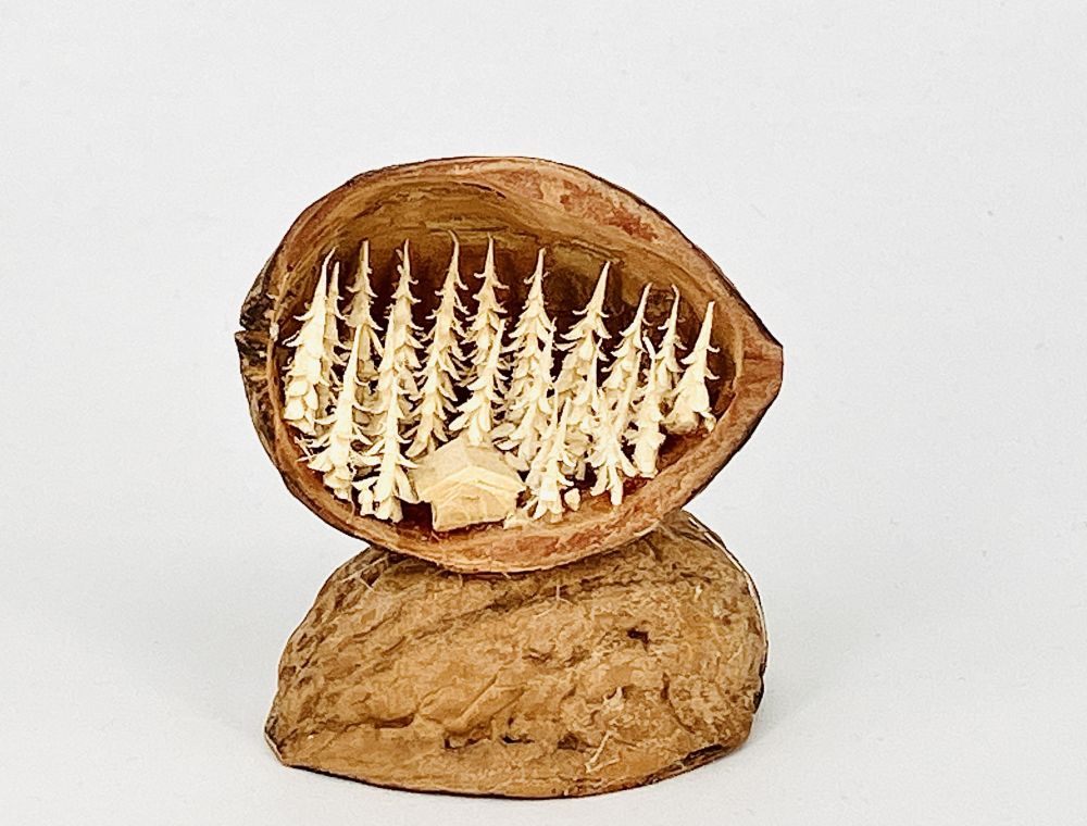 Dieser kleiner Landschaftsausschnitt in der Wallnussschale ist ein Geschenk von Lothar Lauterbach. Der ebenso engagierte Naturliebhaber und schaffte es mit seinen Schnitzereien ins Guiness Buch der Weltrekorde. © Werkleitz